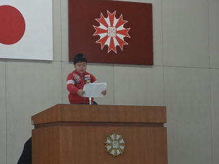 各クラスの代表児童がみんなの前で、自分の決意を堂々と述べました。