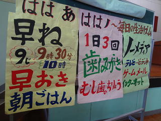 プール前掲示板には、子供たちががっばったことが掲げられていますよ。