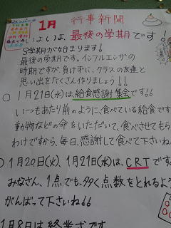 広報委員会の新聞では、「始業式」「給食感謝集会」「CRT」が3大トピック!