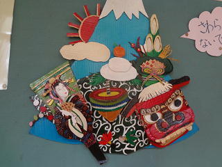 こんなに豪華で、おめでたい掲示!お正月の主役たちが集合しています。