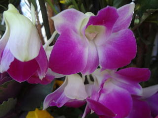 新年をお祝いするお花で飾られています。おめでたい新年を演出していますね。
