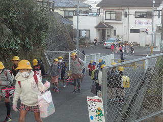日の出は7時すぎ・・。子供たちは、朝日を浴びて登校!