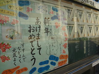 玄関にも・・・、事務室前の受付にも・・・、新年を祝う飾り付け!本校を訪れるお客様、職員、子ども達や保護者の皆様を気持ちよく迎えます。
