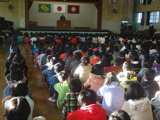 終業式の後、冬休みを有意義に過ごすための大切なお話しがありました。子供たちは真剣な眼差しで聞いていました。