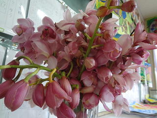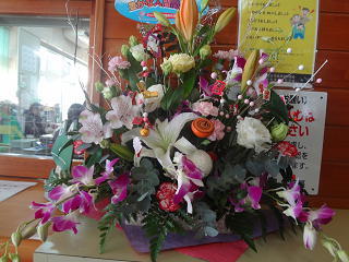 こんなに素敵なお花が届けられました。このフラワーアレンジメントにみんな嬉しそうでした。