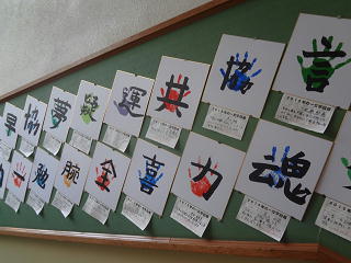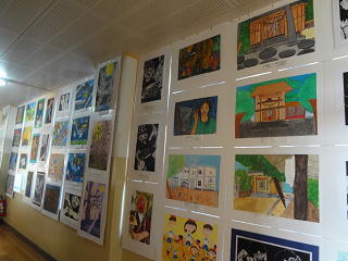 校長室前の廊下に掲げてあります。力作に子供たちはたくさんの刺激を受けているようです。