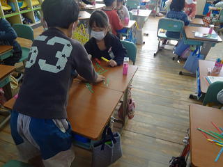 お楽しみ会の会場をみんなで作り、自分たちで考えた活動を展開しました。それぞれの役割の中で子供たちは張り切って活動していました。