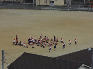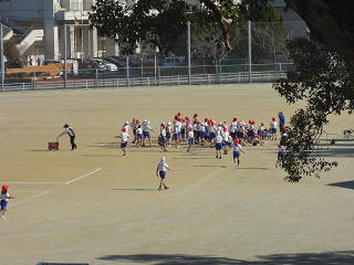 この冬一番の寒気が到来!でも昼休み、子供たちは元気に運動場で遊んでいます。