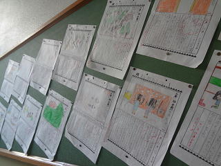子供たちの冬休みの楽しかった一日が絵日記風に記され、掲げられています。参観日に時にじっくりご覧ください。