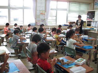 デイビット先生と楽しく活動していました。たくさんの英語を使ったゲームにみんな夢中で取り組んでいましたよ。