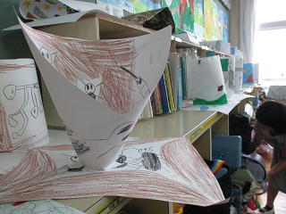 粘土を用いて楽しい作品を作っていましたよ。伸ばしたり・・・丸めたり・・・いろいろ工夫していました。