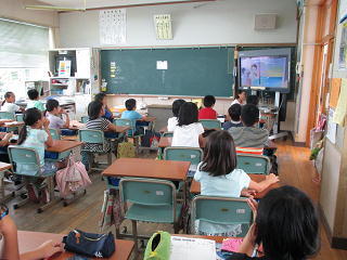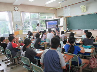 自分たちで電子黒板を用いて読み聞かせを行っていました。さまざまな工夫のある読み聞かせですね。