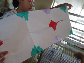 真っ白な和紙が配られ・・・八幡神社のお祭りのときに飾られる灯篭つくりが始まりました。どんな作品ができるのか・・・楽しみですね。