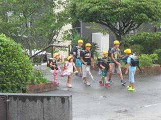 、「富田っこ」は負けません。大雨の中、元気に登校しました。