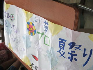 八幡神社の夏祭りを彩る灯篭作り・・・絵付けを行ってましたよ。