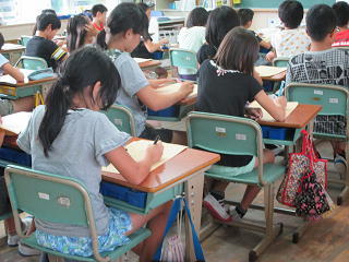 お昼は激しい雨・・・。6年生はそれぞれの時間を楽しく過ごしていましたよ。坊主踊りの練習・・・剣玉・・・・フルーツバスケット・・・・等、みんなで工夫して遊んでいましたよ。