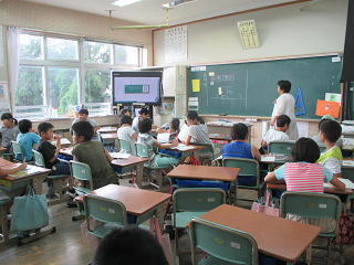 電子黒板に写された写真や資料をみながらいろいろな地域の特徴を捉える学習が展開されていました。みんなの前で発表したり・・・意見を述べ合ったり・・多様な活動が展開されていました。