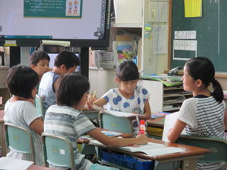 今日はこれまでの学習のたしかめ・・・電子黒板で確認しながら、たしかめの問題に懸命に取り組んでいましたよ。