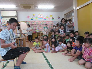 幼稚園・保育園での読み聞かせ・・・園児たちは身をのりだして楽しそうに聞き入っていましたよ。