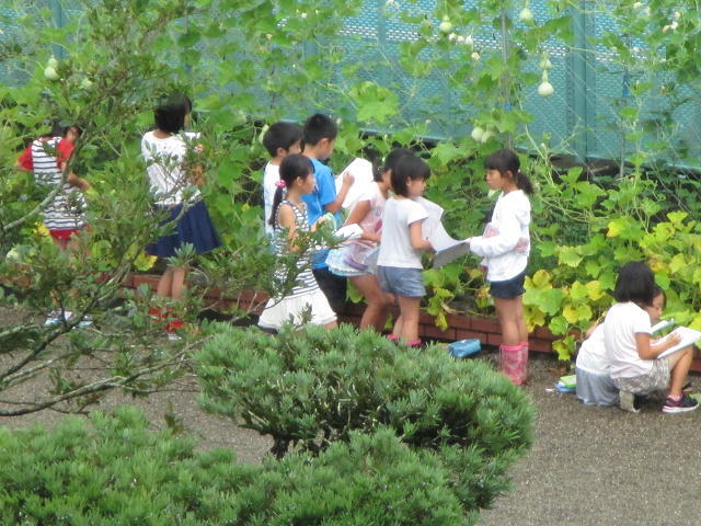千なりひょうたんがたくさんできています。今日は丁寧に観察ノートに記録していましたよ。