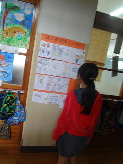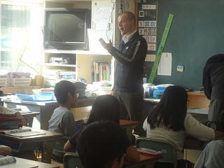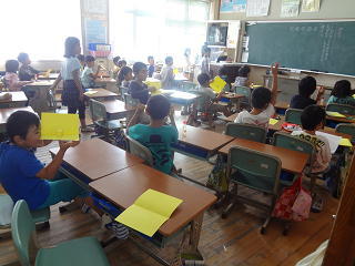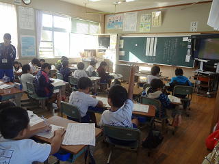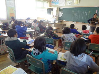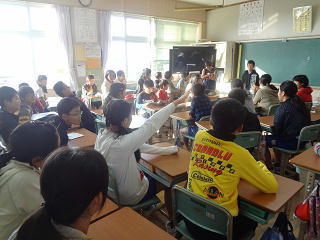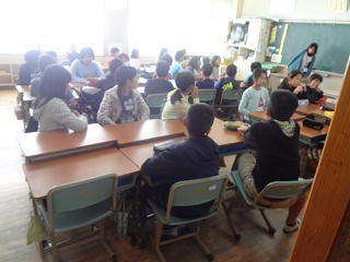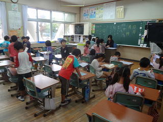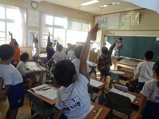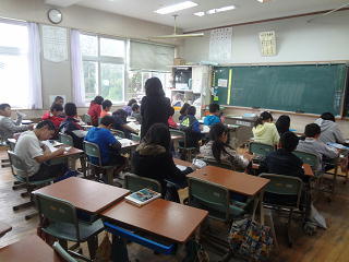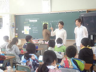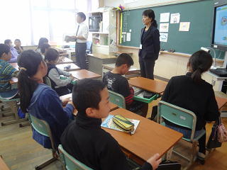 中学校の英語の先生といっしょに活動しました。子供たちは、緊張しつつも楽しんで活動していました。