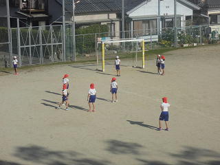 運動場でボール運動!楽しく体を動かしていましたよ。