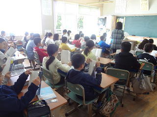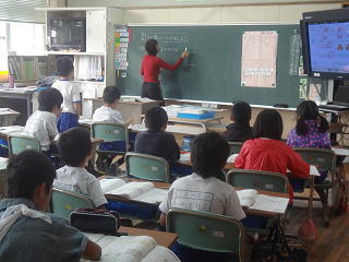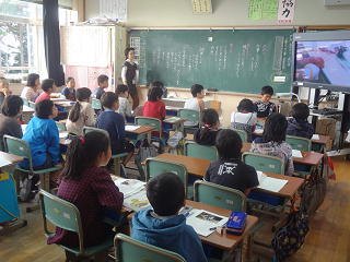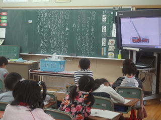 電子黒板等の機器を活用した楽しい授業が展開されました。
