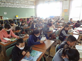 長い説明文を丁寧に読んでいました。みんな懸命に取り組んでいました。