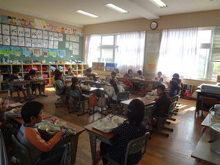 豪華な給食に、みんなわくわく、ぱくぱく!