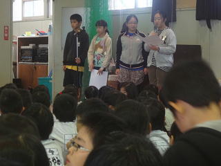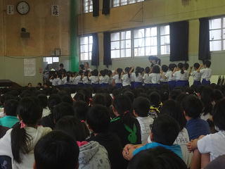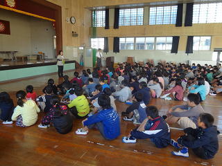 今日の集会は6年生の発表!司会・進行は5年生に委ねられました。みんな立派に役割を果たしましたよ!