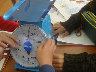 はかりを用いた授業が展開されていました。子供たちは興味しんしんでした。