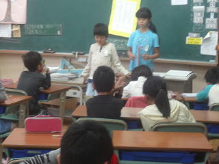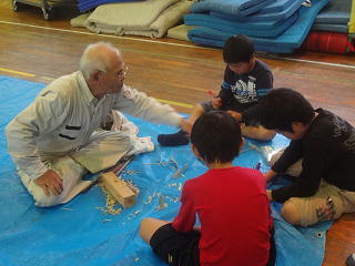 老人クラブの方々が来校され、竹とんぼの作り方を3年生に教えていただきました。