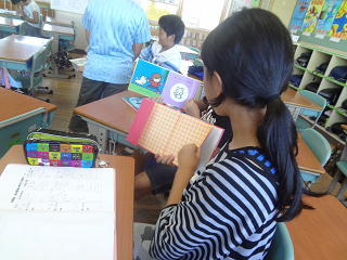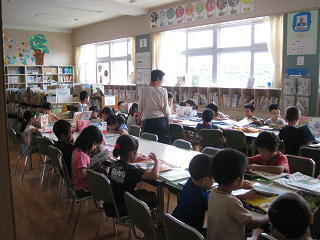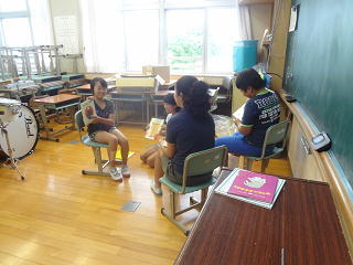 6年生は、毎週、幼稚園や保育園で読み聞かせを行っています。・・・そのための練習をそれぞれのグループごとに行っています。みんな積極的に取り込んでいます。
