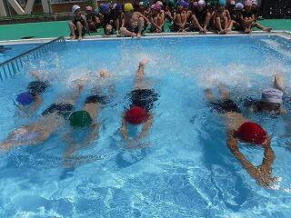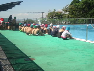 プールで元気に活動していましたよ。青空の下、元気いっぱい取り組んでいましたよ。