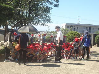 子供たちは汗だくですが元気に登校!お友達をみつけて駆け寄り、あいさつを交わしていました。笑顔がまぶしい爽やかな朝でもあります。