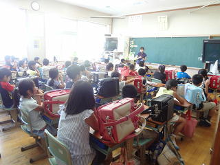 5時間目、1年生が静かに図書室にやって来ました。