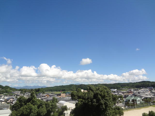 午前中・・・気温がぐんぐん上昇しています。・・・・広がる雲はもう夏の雲・・・・・。放送では昼休み前、コップ一杯の水を飲むことや帽子を着用すること等の注意・・・・・がありました。本日の熱中症指数は警戒レベルです。