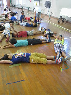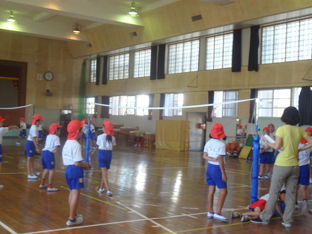 講堂でボールを使った活動を行っていました。それぞれの子供が汗をたくさんかいて、懸命に取り組んでいました。