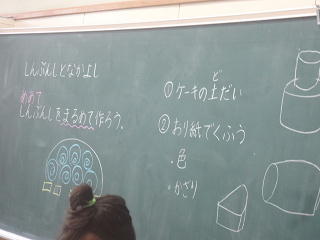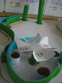 新聞紙を丸めて・・・思い思いにお菓子やケーキ作り・・・。子供たちは夢中で制作していましたよ。