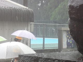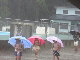昨日までと一転・・・朝から激しい雨・・でも「とんだっこ」はそんな雨にも負けていません。・・濡れながらも・・元気に・・・あいさつを交わして登校しました。