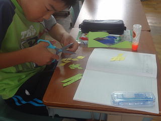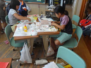 家からもってきたお気に入りの材料で作品を作っていました。楽しそうでした。