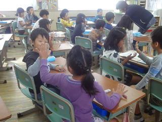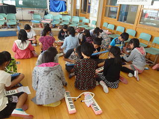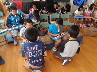 鍵盤ハーモニカの曲をみんなで教え合い・・・、確かめあい・・・、すらすら演奏できるようになりました。みんな嬉しそうでした。