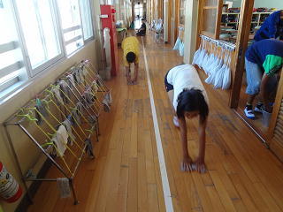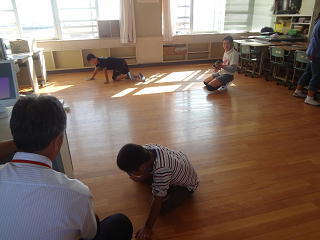 マット運動に懸命に取り組んでいました。
