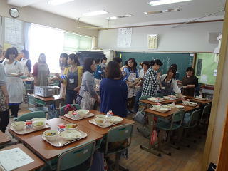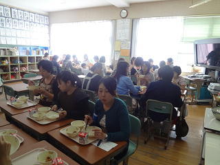 給食試食会が行われました。たくさんの保護者の方々がこられました。栄養教諭の講話の後、子供たちの給食準備の様子を見守られました。その後、みなさんで準備。和やかな雰囲気の中、じっくり味わって試食されていました。
