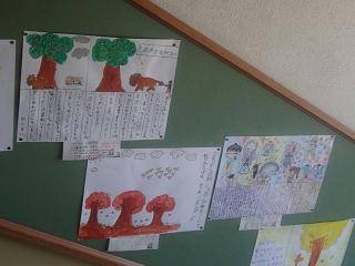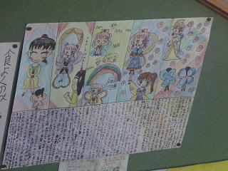 自分で考えたお話が挿絵とともに掲げられています。想像力がいかんなく発揮されているようです。