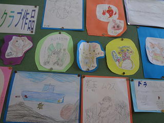 イラストクラブのみなさんの楽しい作品が掲げられていますよ
