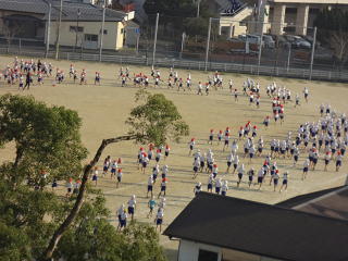 全校のみんなで走りました。持久走大会に向けて自分を鍛えています。