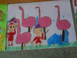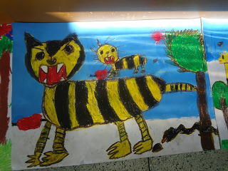 動物園での思い出を絵で表現していました。動物たちが今にも飛び出してきそうな作品の数々です。