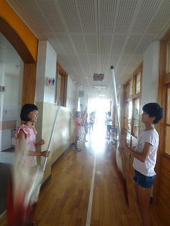 夏らしい作品が掲げられ子供たちの目を楽しませています。