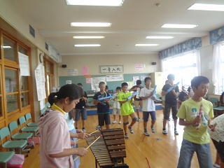 それぞれの担当の楽器や旗を使って練習を重ねています。11月の音楽祭目指して・・・の取組です。